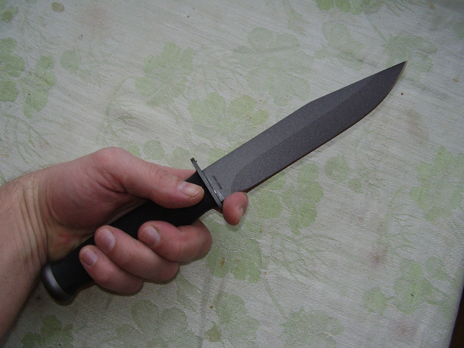 Solid butt (field hammer use) Front grip Reverse hammer grip Government Agent & kydex sheath