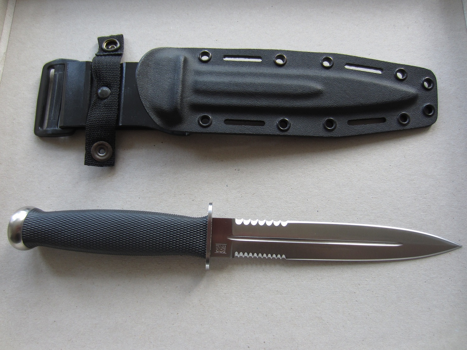 Description: SOG Desert Dagger (S25). Never used, never sharpened. Stored in sheath (kydex, later version) for a few years, displayed for a few. There are a few micro scratches from moving in and out of sheath. On the base of the ricasso on the "Seki Japan" side there is one tiny oxidation spot, see photo. The sheath was stored in an uneven position for a while and took a slight skew along its long axis at the tip, see photo. I haven't done anything to attend these "blemishes", will leave it to new owner. All should be fixable, outstanding condition. No box. Price $US Shipping to continental US is $20US, signed for with tracking. But will ship almost anywhere, shipping fees will be accordingly. Buyer assumes all legal responsibilities/customs etc. Payment via Paypal only. No returns.